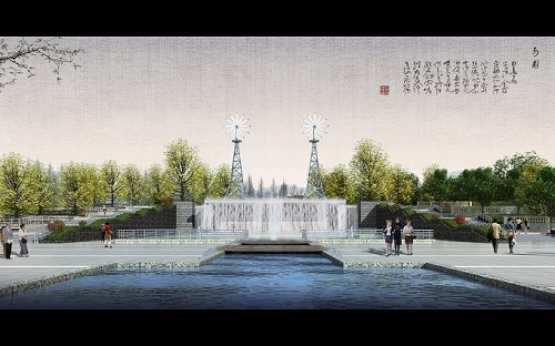 印象宿州風車瀑布廣場節(jié)點位于新汴河風景區(qū)206國道東側(cè),總設(shè)計面積約20700㎡。設(shè)計理念意圖用動態(tài)水景的多層之勢體現(xiàn)城市發(fā)展之活力,表現(xiàn)出宿州城市動感,向上的城市風貌。另外,在古詩中廣為流傳的宿州八景也通過繪畫和雕刻的形式在廣場上展現(xiàn),生動地體現(xiàn)宿州市變化的滄海桑田,讓游人憶古惜今,領(lǐng)略宿州城市的巨大變化。